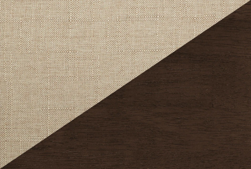 - Traditional style design with a dark walnut finish and fabric upholstery