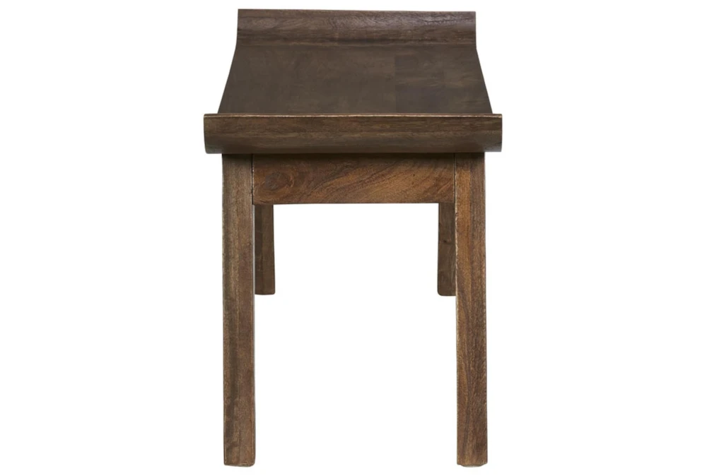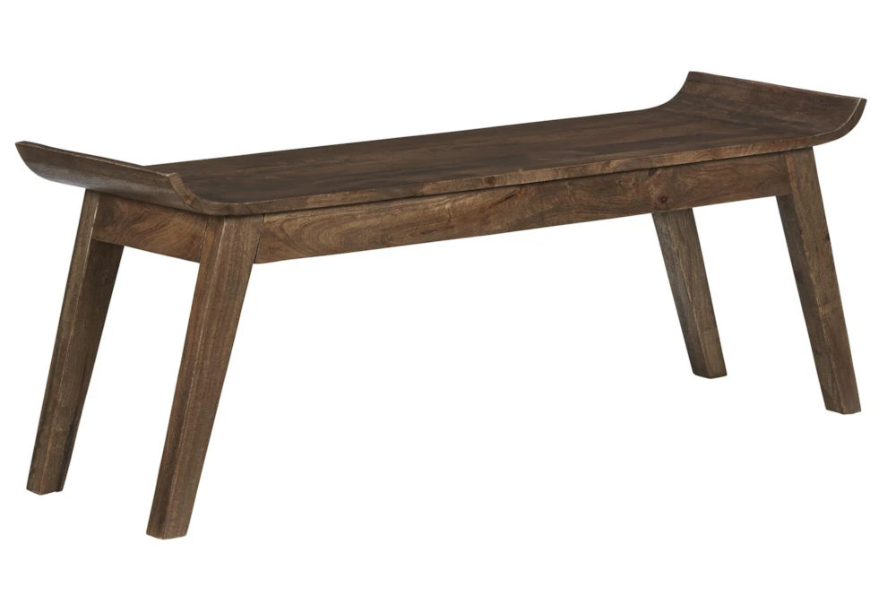 This 48″ brown accent bench is a solid wood, backless piece perfect for any casual entryway. Its curved design adds a touch of elegance to the room.