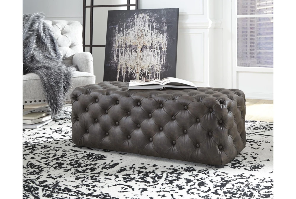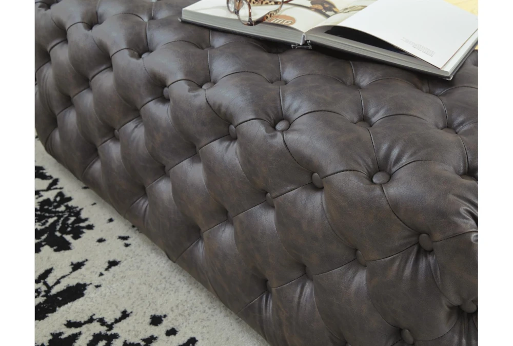 - 50″ Brown Faux Leather Tufted Accent Ottoman Assembly Instructions