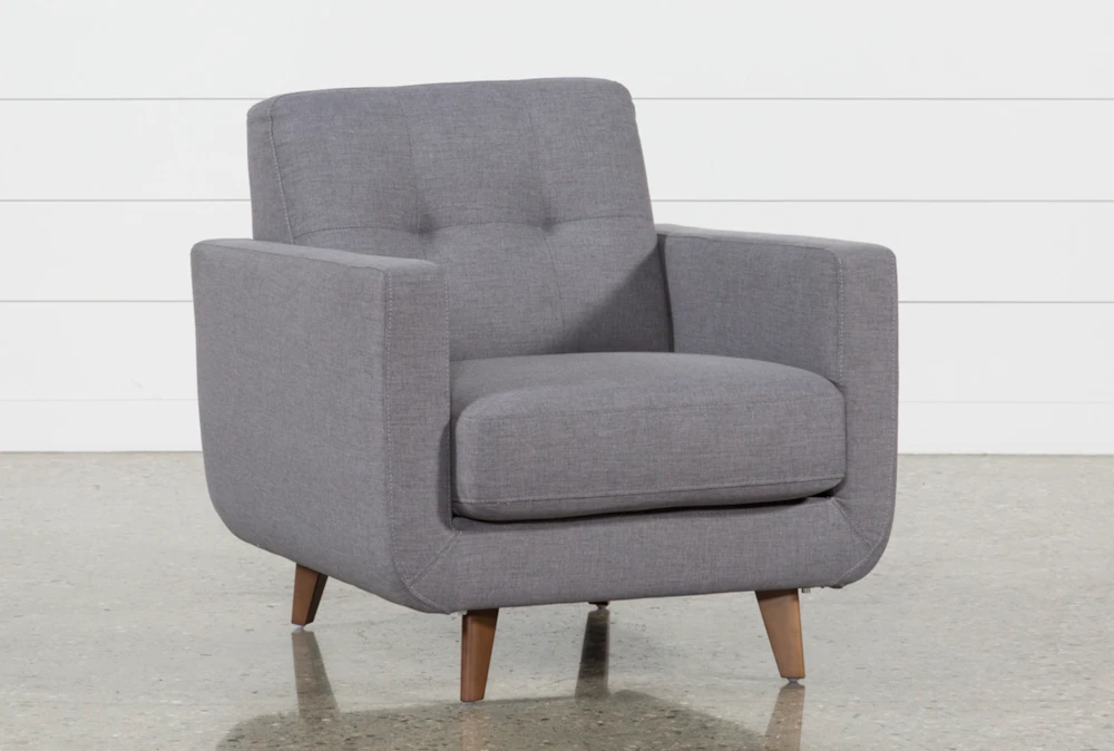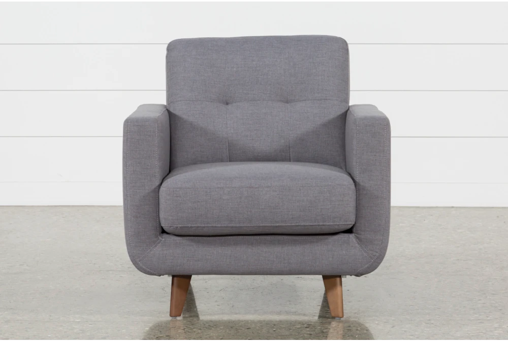 Get a chic retro look for way less with our fun, fresh Allie Dark Grey chair. Mid-century modern features – like clean curves, a grid-tufted tight back and splayed beech wood legs that detach for easy delivery – will transform your living room into the ultimate lounge. Offered at one of our best, lowest prices, this piece doesn’t sacrifice on style or quality, thanks to impeccably tailored, solidly constructed details and durable, low-maintenance fabric. You even have a choice of colors.