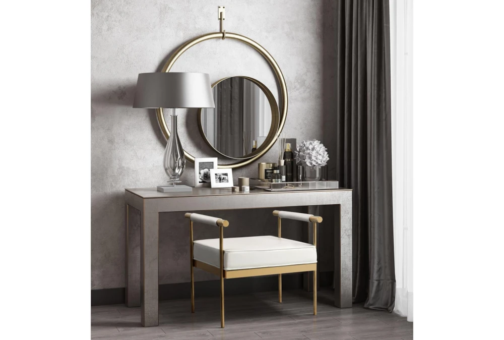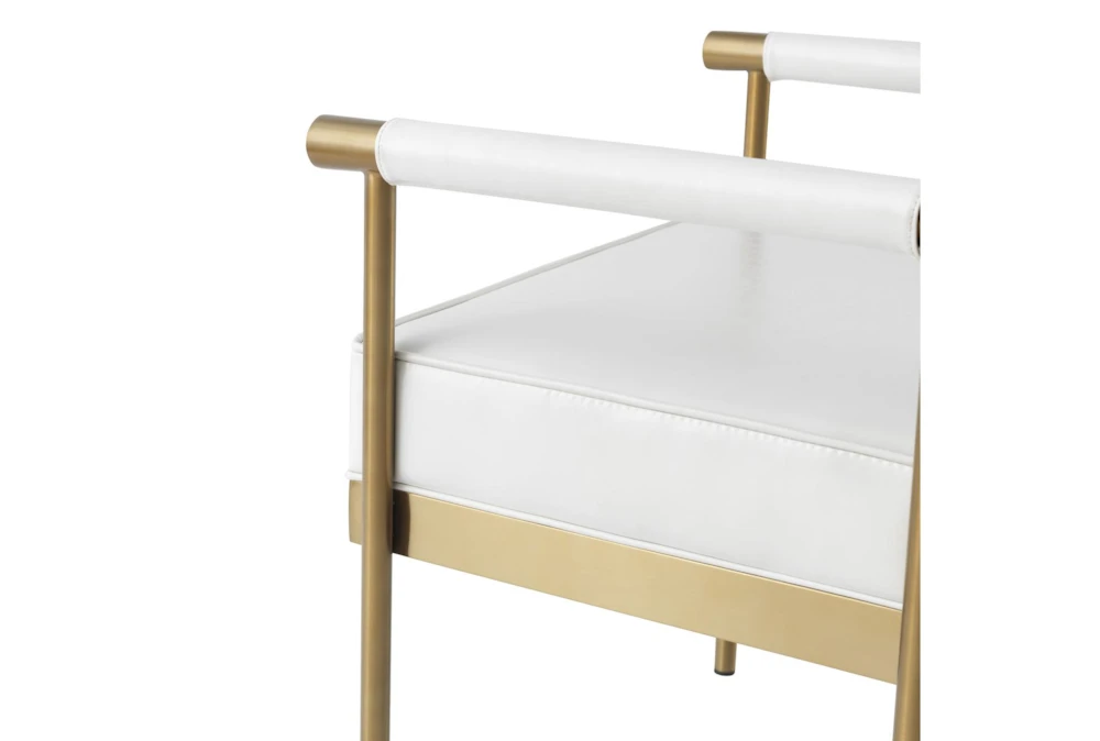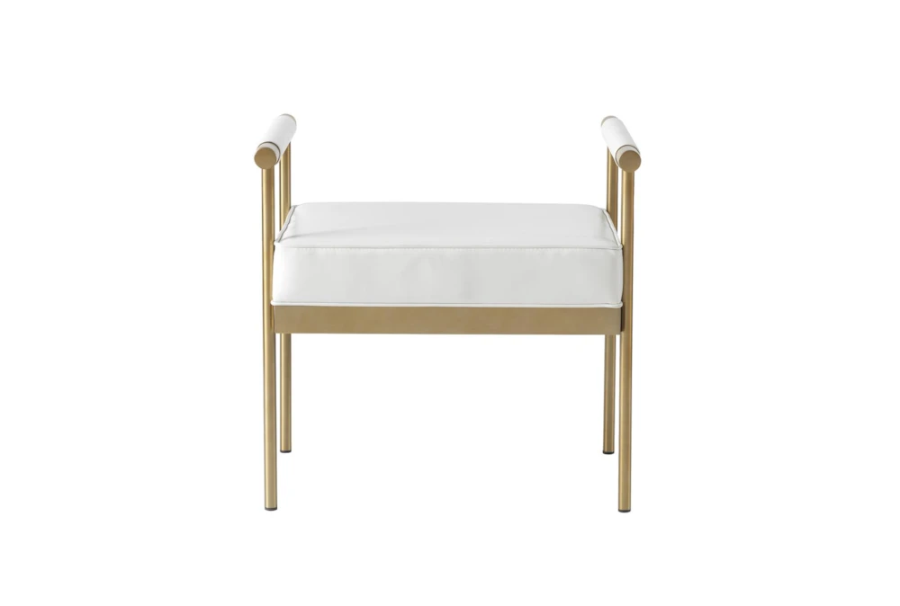 This elegant Anita White Faux Leather Gold Bench boasts a traditional style that will elevate any space. Crafted from high-quality fabric, it exudes luxury and sophistication.