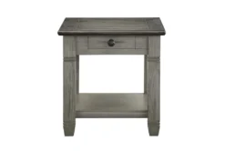 The Appeal L Chairside Table is a traditional wood table in a brown color, perfect for any living room. This compact table requires assembly and is made of poplar solids and veneers, MDF, and particle board, finished in a dark poplar shade.