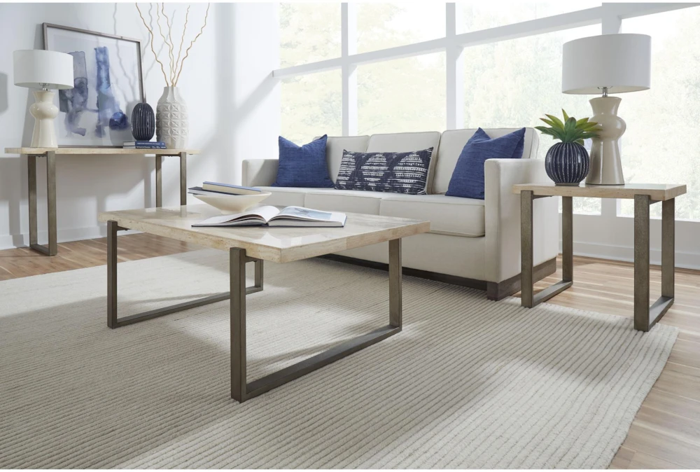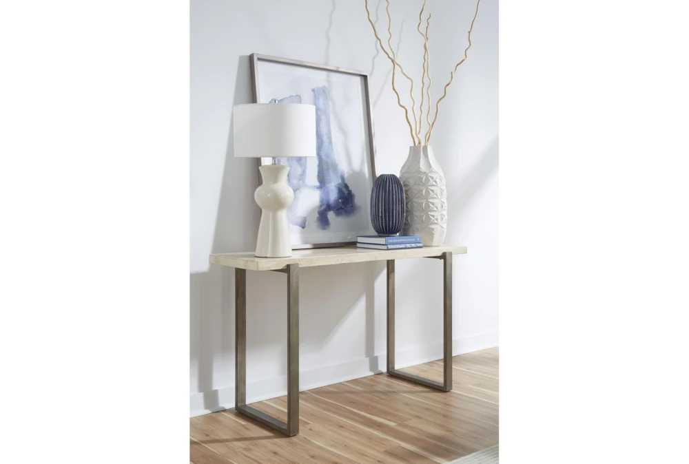 This contemporary Ariela Console Table is the perfect addition to any chic living room. Crafted from durable stone, it exudes both elegance and functionality.