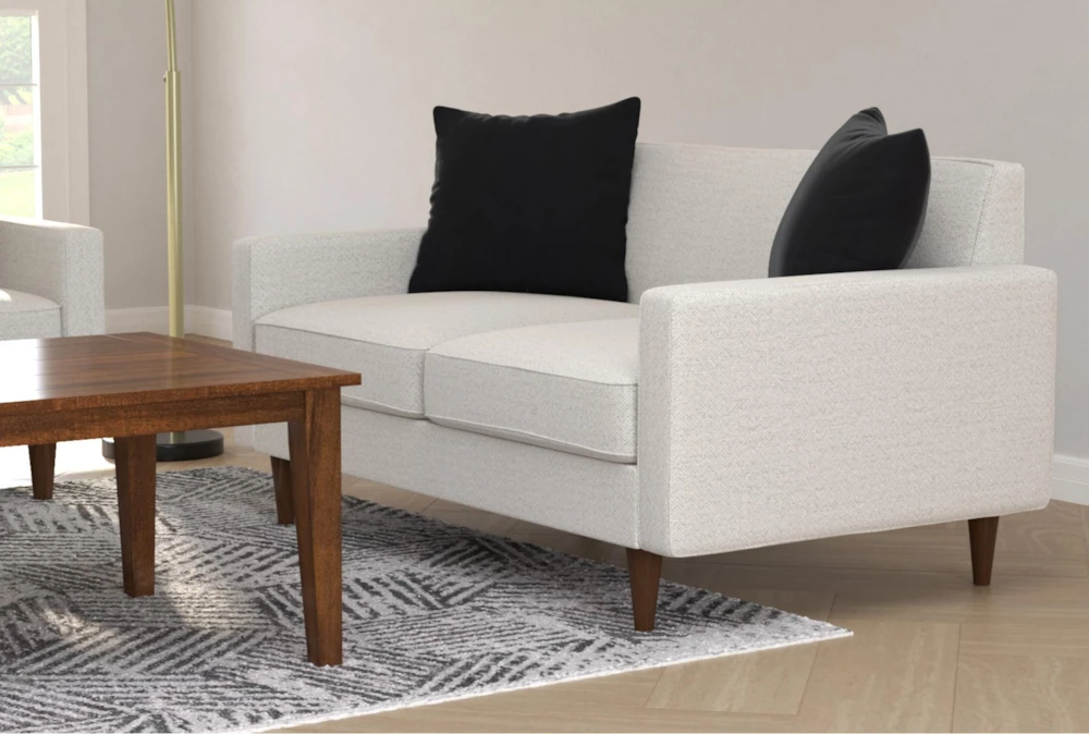 Mid-century modern style hits a high note on our Arya loveseat, which brings the best of this timeless aesthetic to your living room. From tapered legs and track arms, to a tight back and welted seams, the details are tailored, streamlined and sophisticated. The design is distinguished by unique seat cushions, which are tufted on one side and smooth on the other, so you have the option to change the look. Currently covered in a performance fabric that’s soap cleanable, bleach cleanable and stain resistant, it can be customized through our Special Order upholstery program at no extra cost.