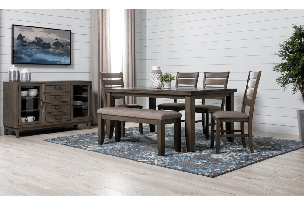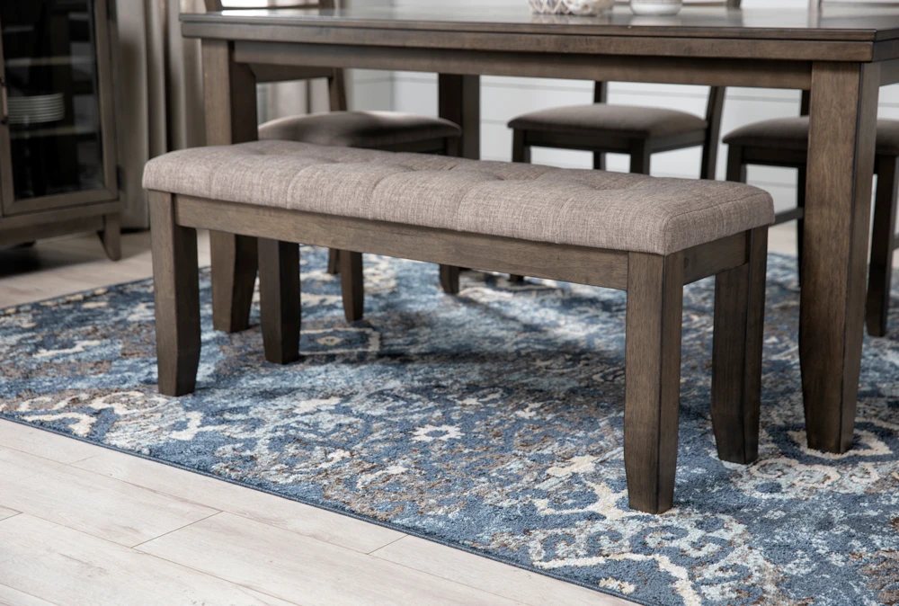 To truly enjoy your meal, you’ve got to be comfortable, and our Ashford bench ensures that you’re supported until the very last bite. It features a wood base in a grey finish, plus a padded seat.
