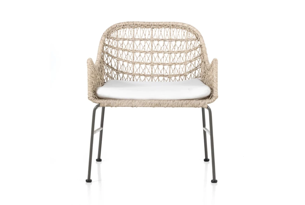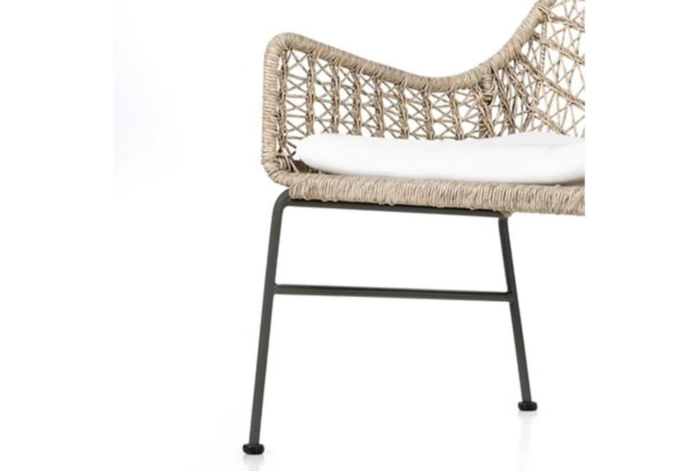 The Bandera Outdoor Chair is a modern and stylish addition to any indoor or outdoor space. Made from high-quality rattan and secondary materials including metal, rattan, and wicker, this chair is both durable and comfortable, complete with a cushion in a chic bronze color.