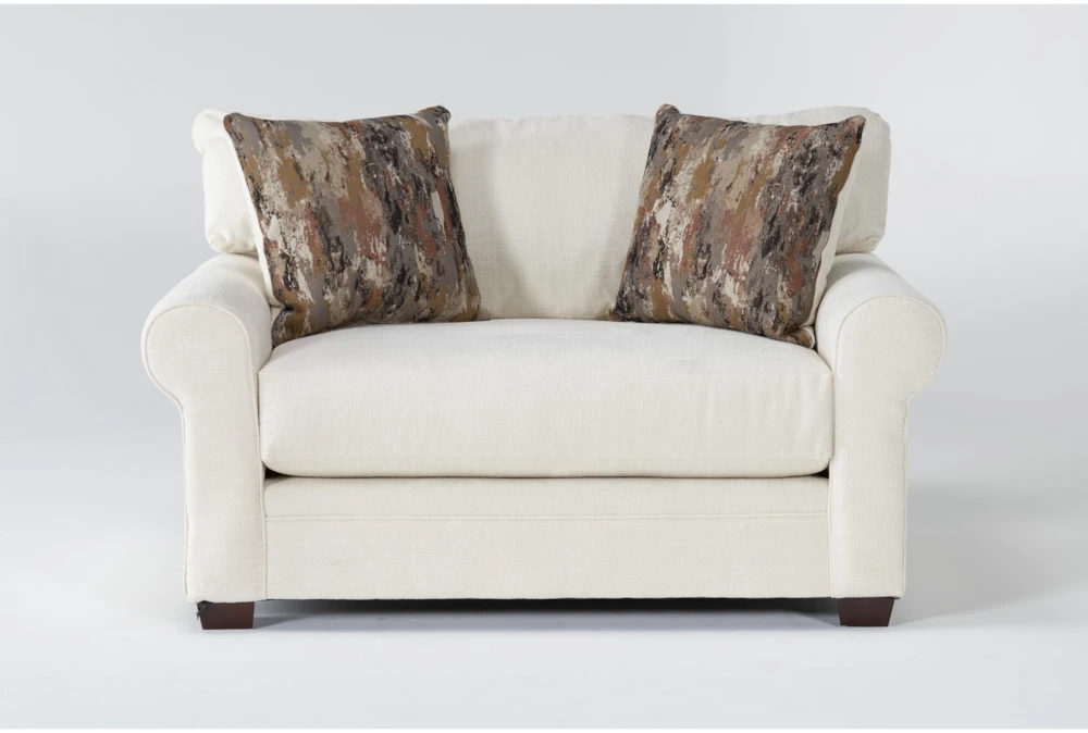 What could be more inviting than our Cameron chair’s totally comfortable, totally casual design? From the cozy upholstery, to the deep seating, to the accent pillows and graceful roll arms, there are so many details that make this piece irresistible. A trend-forward palette, plus an elegant print, add extra style appeal. Through our Special Order program, you can customize the upholstery at no extra cost.