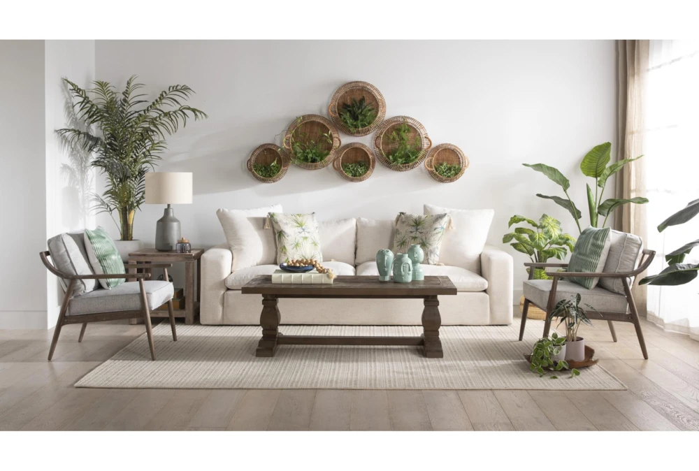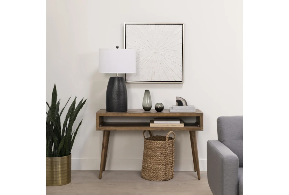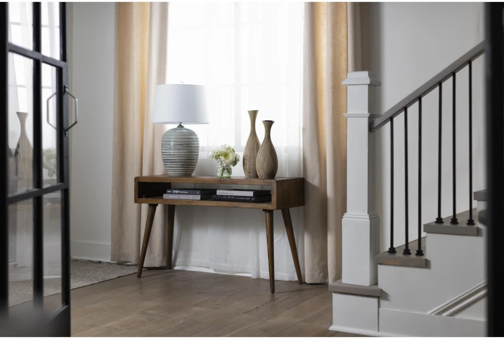 Clean lines and rustic textures meet in our unique Dakota sofa table. Crafted with solid pine, the design is a natural beauty that boasts mid-century modern roots and an open shelf for arranging magazines and accents.