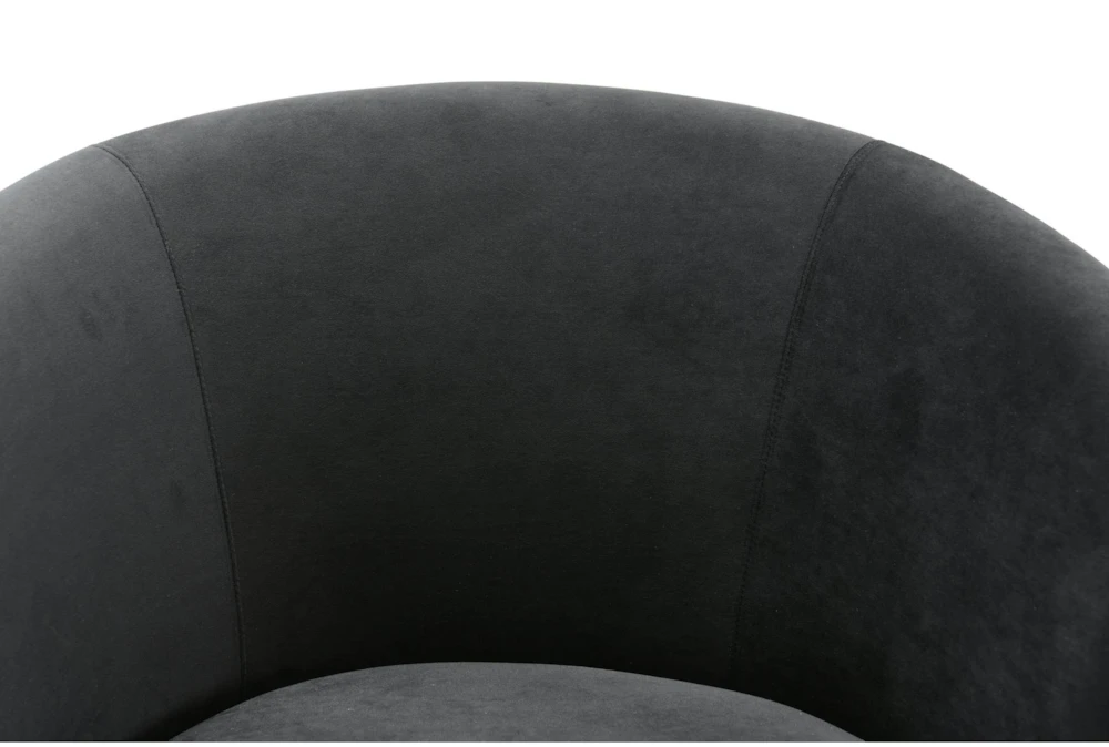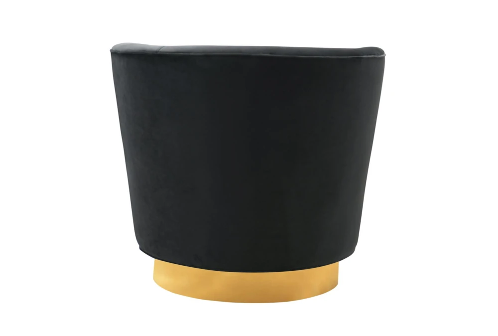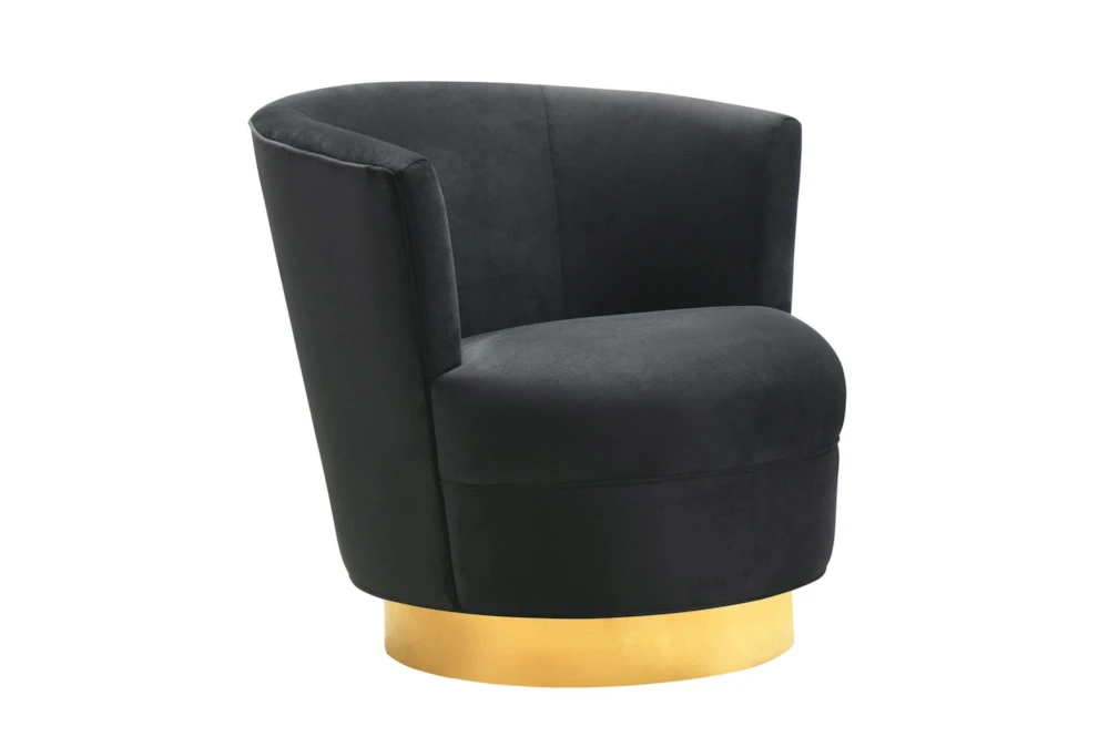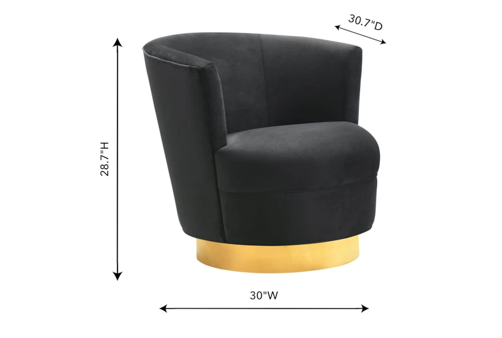 The Florence Black Velvet Swivel Accent Chair is a contemporary style, indoor piece with a curved design, tight back, and foam cushions. Its soft and sumptuous velvet upholstery is complemented by a solid steel frame upholstered with PVC material, while its swivel feature makes it a perfect addition to any living room, den, library, or study.