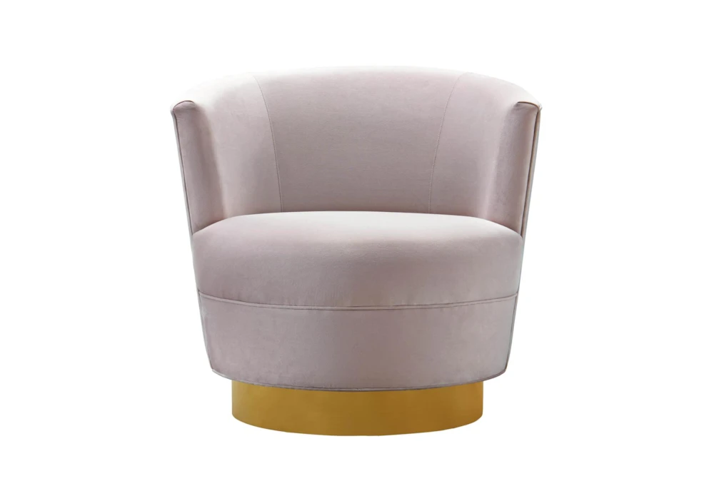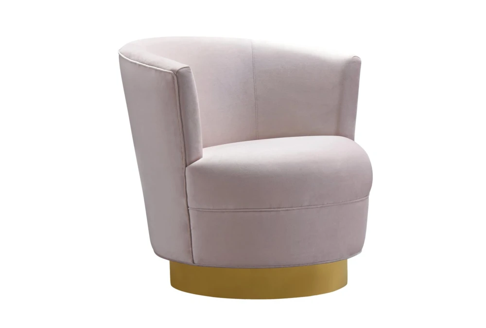 This Florence blush velvet swivel accent chair is a contemporary addition to your indoor living space, with its curved design, foam cushions, and tight back. The soft and sumptuous velvet upholstery in a pink blush color creates a cozy atmosphere, while the solid steel base upholstered with PVC material provides a sturdy foundation. Perfect for your dining room, den, library, or study, this chair ships fully assembled for your convenience.
