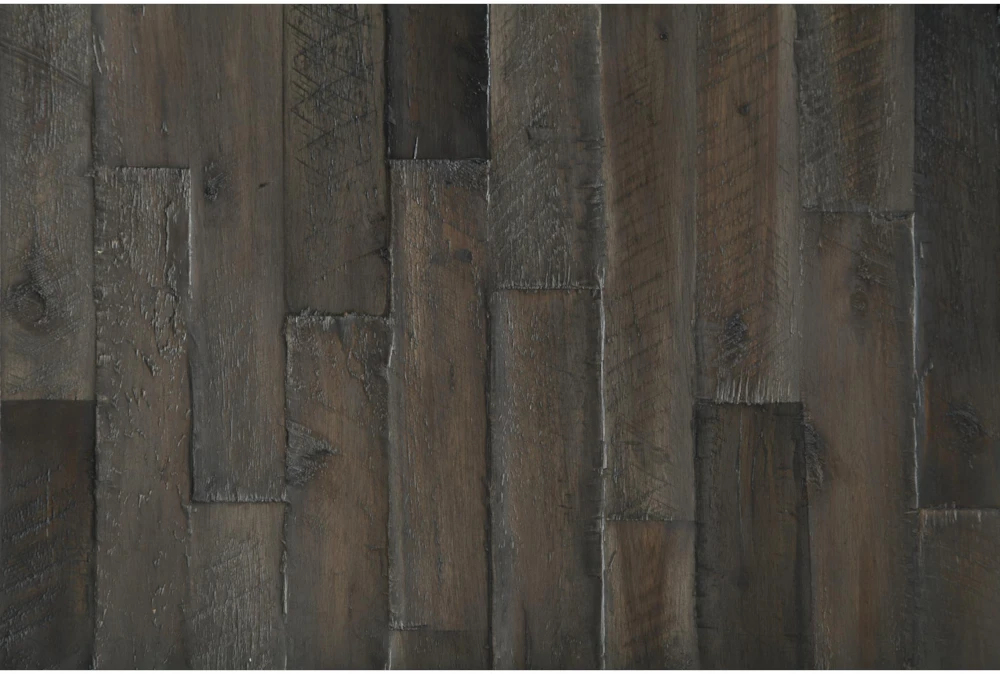 Made of acacia wood with a rustic gray finish and butcher block styling.