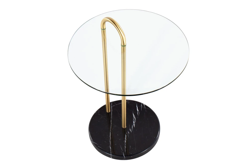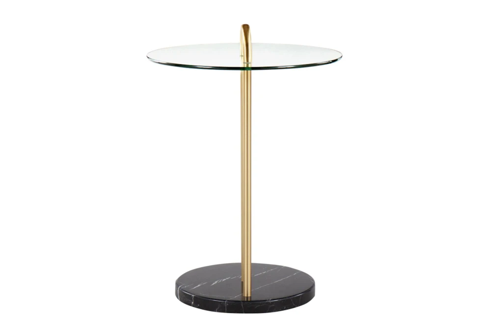 This modern Kate Black Marble, Gold and Glass Side Table is a stunning addition to any room with its sleek metal design and elegant glass top. With its stylish yet functional features, it is perfect for displaying your favorite decor or simply resting your drinks and snacks.