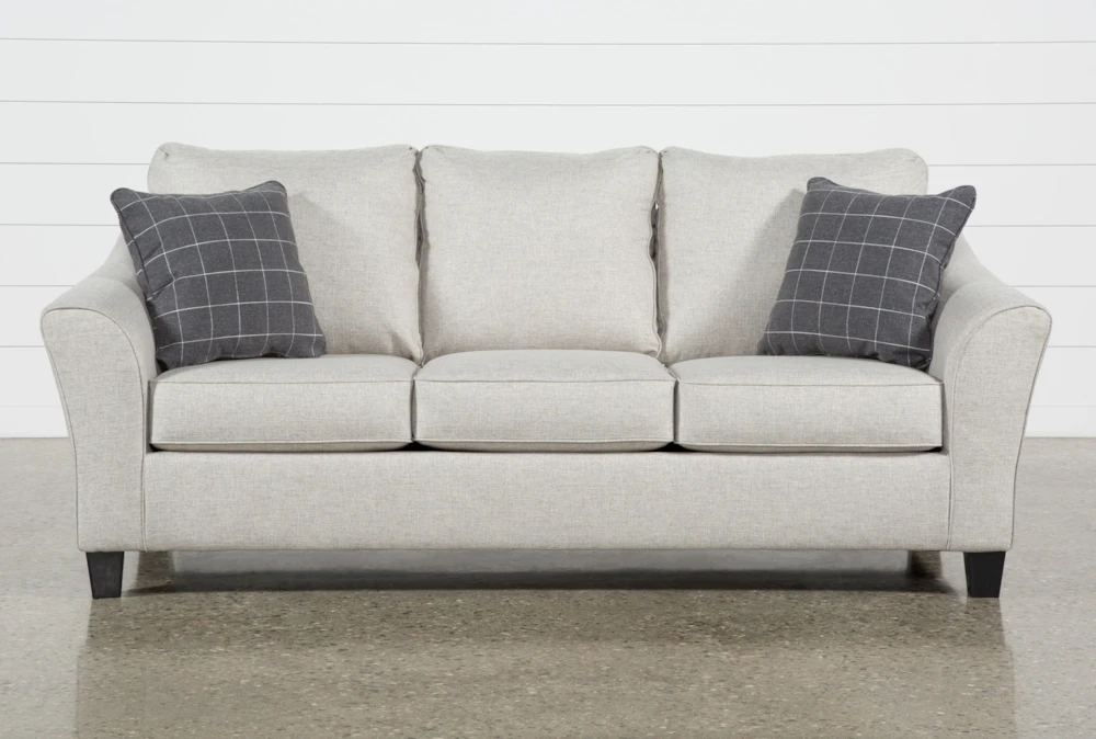 Kinsley is where fresh design meets timeless elements, for less. The 92โ sleeper sofa exudes modern sophistication balanced with clean lines . Modern knole-style arms add a nod to traditional design, while pewter grey upholstery is a perfect modern-day neutral. Kinsley includes two taupe and grey plaid pillows and a queen-size memory foam mattress that overnight guests will love.