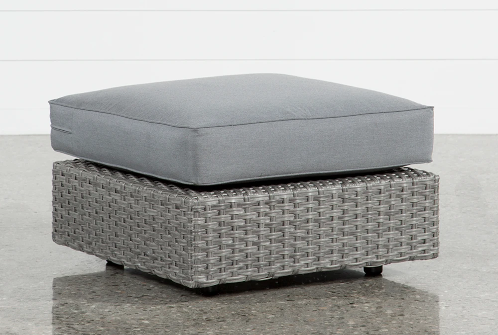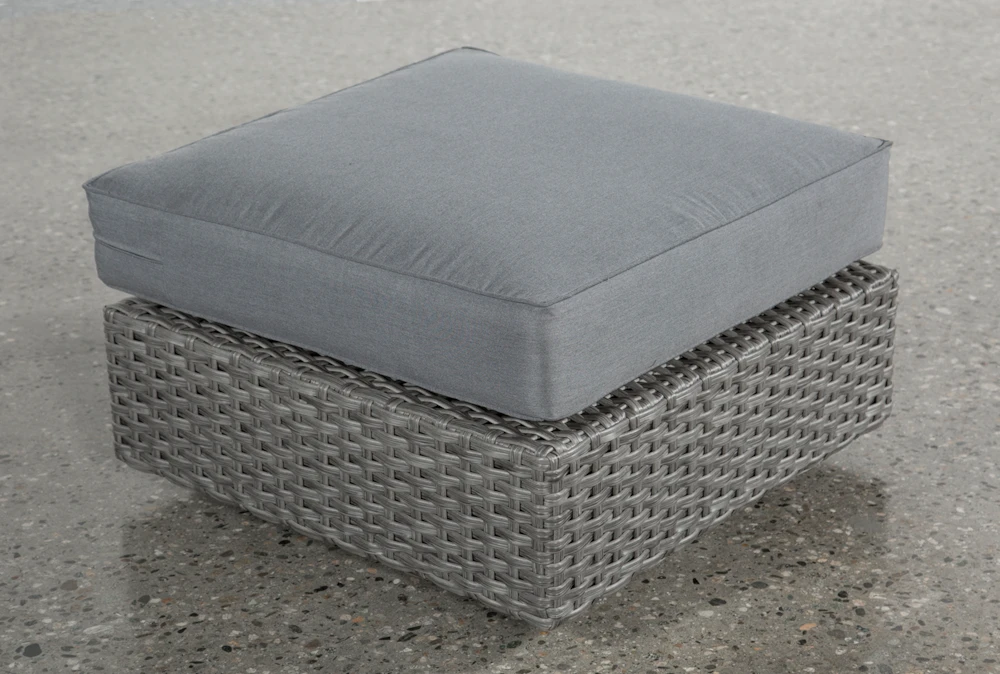 Our Koro outdoor ottoman brings durability and modularity to the backyard with its crowd-pleasing design. It can be used to create a variety of configurations, and it features water-resistant, all-weather materials, including a rust-free aluminum frame and high-end, hand-woven resin wicker. The tight weave, clean lines, grey tones and tailored outdoor-grade foam cushion create a casual, transitional look that works anywhere.