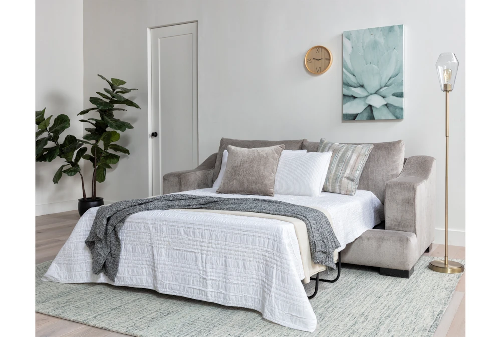 You wonโt be able to resist our Lodge queen sleeperโs oversized proportions, which translate to oversized comfort. The spacious frame delivers a warm welcome with deep seating thatโs perfect for napping. In addition to plush cushions, it features wide sloped track arms youโll love leaning on. For overnight guests, thereโs a pullout mattress that will keep them supported and satisfied. Through our Special Order program, you can customize the fabrics at no extra cost and receive your piece in just a few weeks.