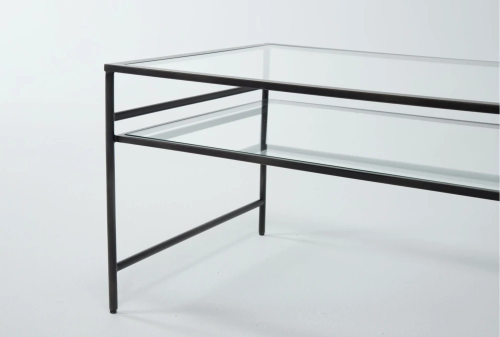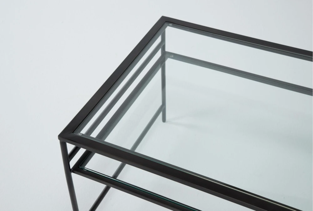 Clean lines and a glass top give the Ophelia occasional tables an open, airy look. The tables are crafted with an iron frame and shatter-resistant tempered glass shelves, ideal for showcasing your favorite books or decor.