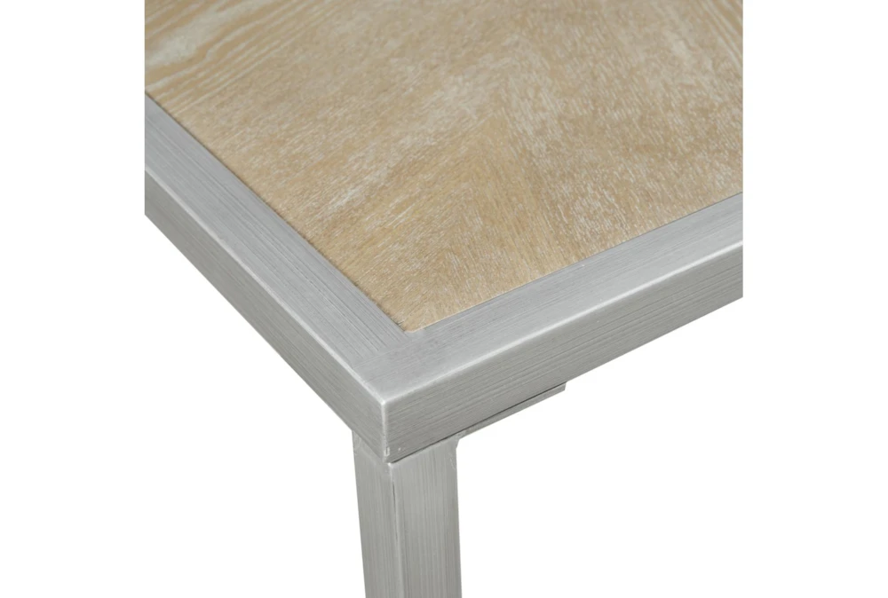 The Maren Square Coffee Table is a rustic-style table designed for the living room, featuring a natural color and metal material. Assembly is required, and the table top is made of metal, wood veneer, and MDF while the base is made of metal, with a wheat/antique brushed silver top finish and an antique brushed silver base finish.