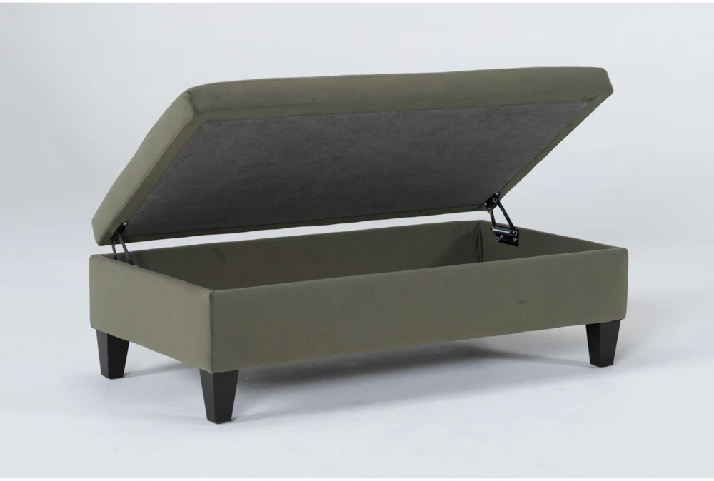Bring versatility and personality to your space with our Perch medium rectangle storage ottoman. Thanks to its novel design, you can use this as a cocktail table, or as the perfect perch for your feet. It even opens to reveal a spacious storage compartment, so you can keep blankets, magazines and additional living room essentials hidden. Through our Special Order custom upholstery program, you can also have it recovered in a fabric that fits your style.