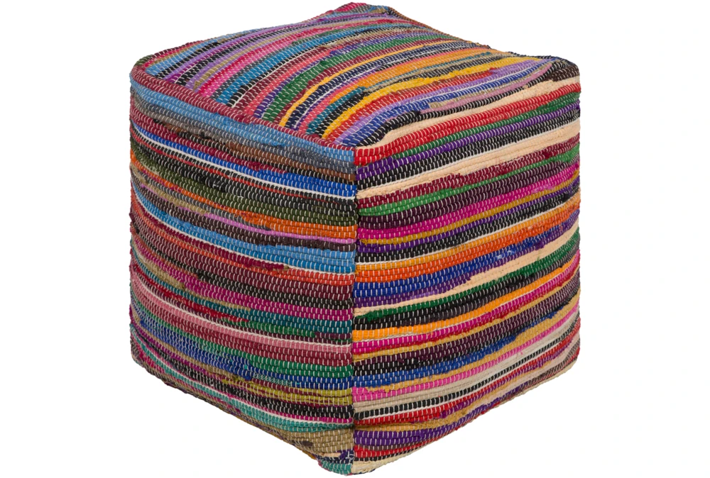 This rustic Pouf-Courtney Multicolor Stripes is made of high-quality fiber and will add a charming touch to any room. Its unique multicolor stripes design is both eye-catching and versatile, making it a perfect addition to any decor style.