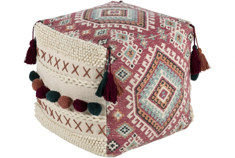This lovely Pouf in Pink Red Tassel boasts a rustic style and is made from high-quality fiber. It features a charming fringe that adds a touch of elegance to any room.