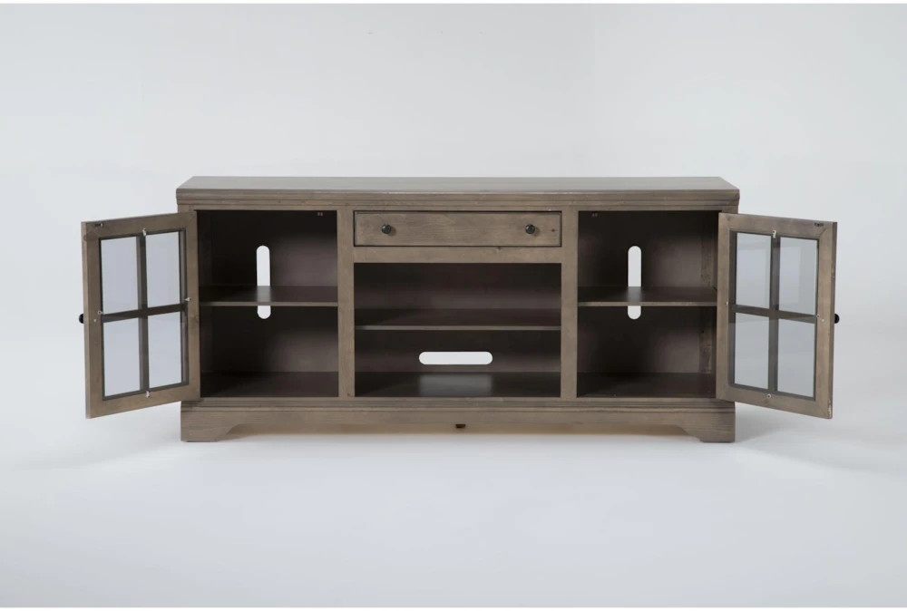 If your TV is your everything, our Preston console is the perfect place to showcase it. Thanks to the natural beauty, strength and quality of solid ponderosa pine, this design will be a sophisticated, sturdy addition to your living room. A timeless, versatile grey finish highlights the wood’s authentic characteristics, and enriches the molding and panel details.