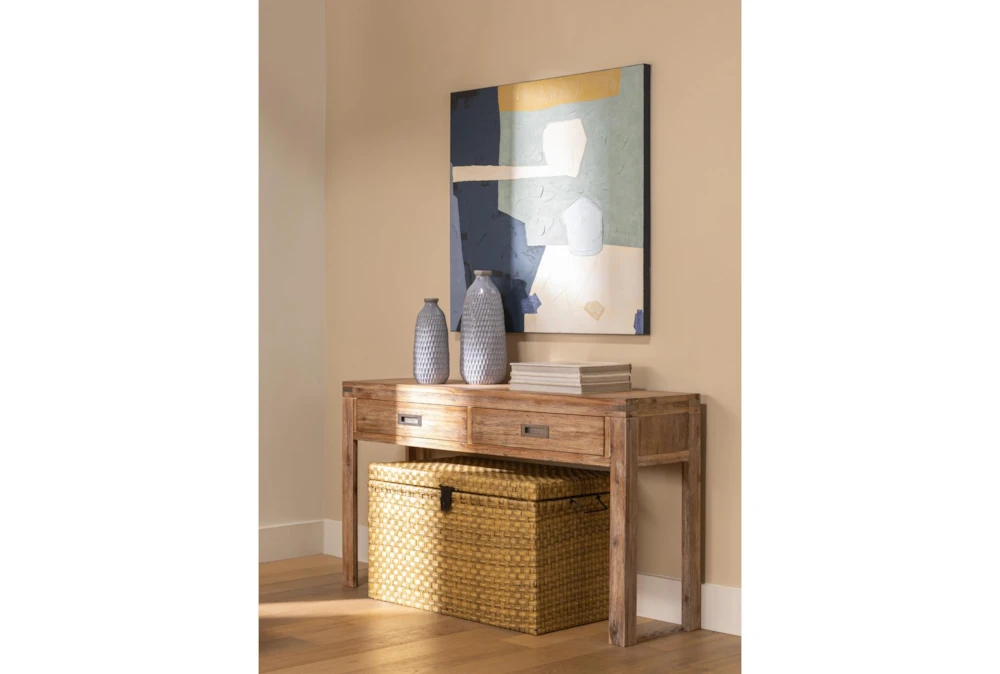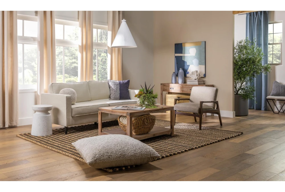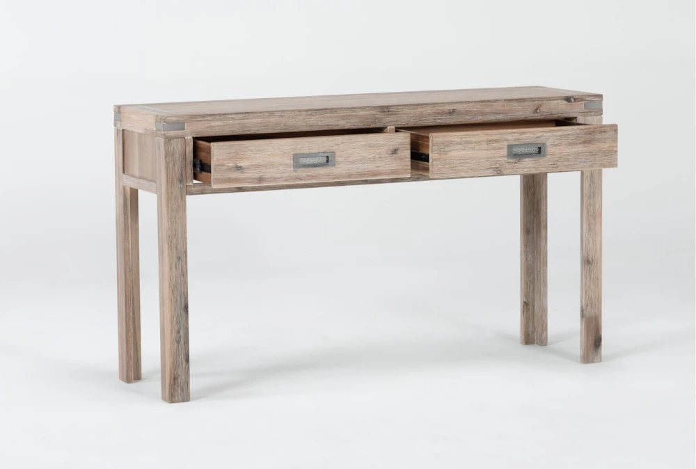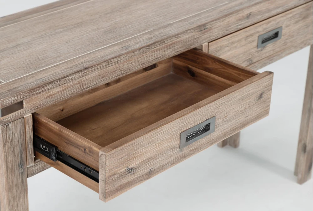 Charming rustic character meets hardworking industrial spirit in our Sandburst occasional collection. Thanks to handsome, sturdy construction and distinctive details, these tables will add quality and personality to your space. Solid hardwood and acacia veneer blend beautifully in streamlined designs that provide plenty of space to showcase your dรฉcor. Special touches like a weathered driftwood finish and cool metal accents make each piece a rich addition to your living room.