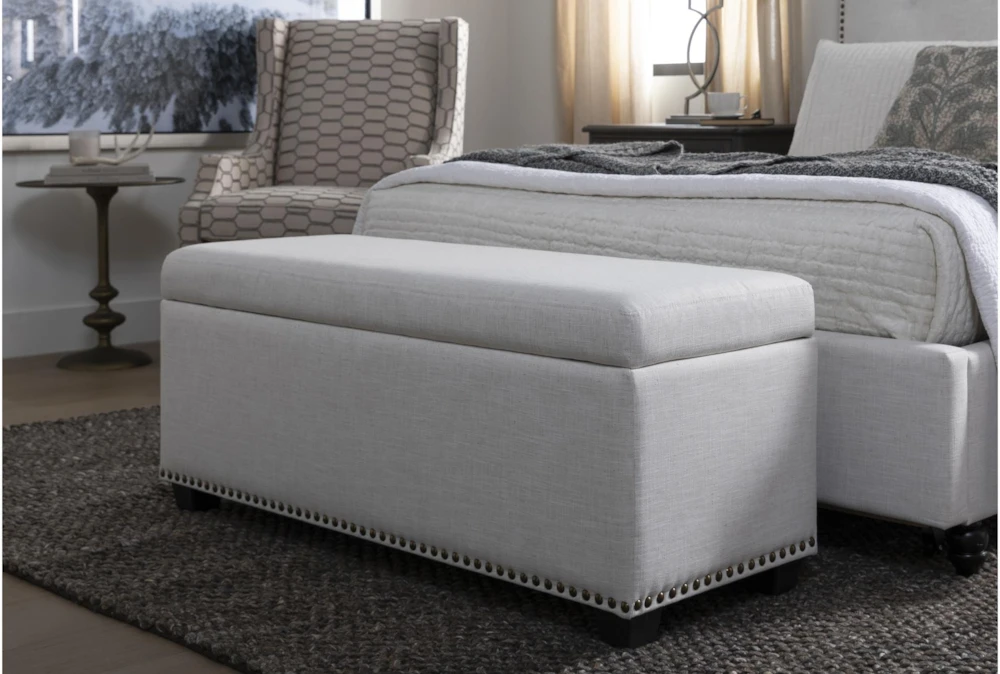A graceful, useful addition to your bedroom, the nailhead-trimmed Sophia II storage bench is refined place to sit, and it’s perfect for keeping shoes, bags and blankets hidden.