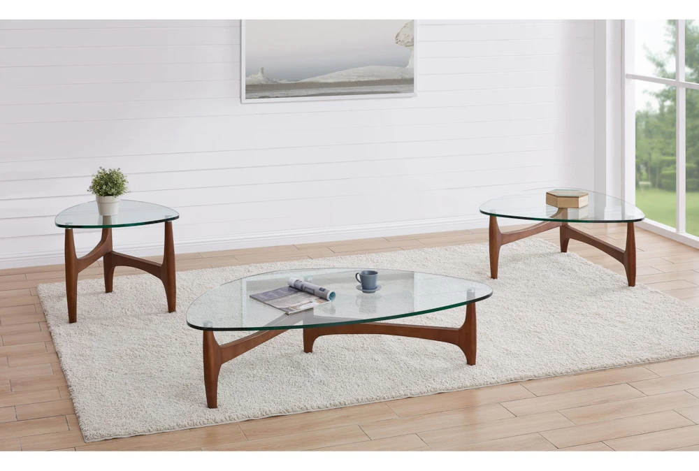 Ledell Coffee Table in Clear Glass with Walnut Base