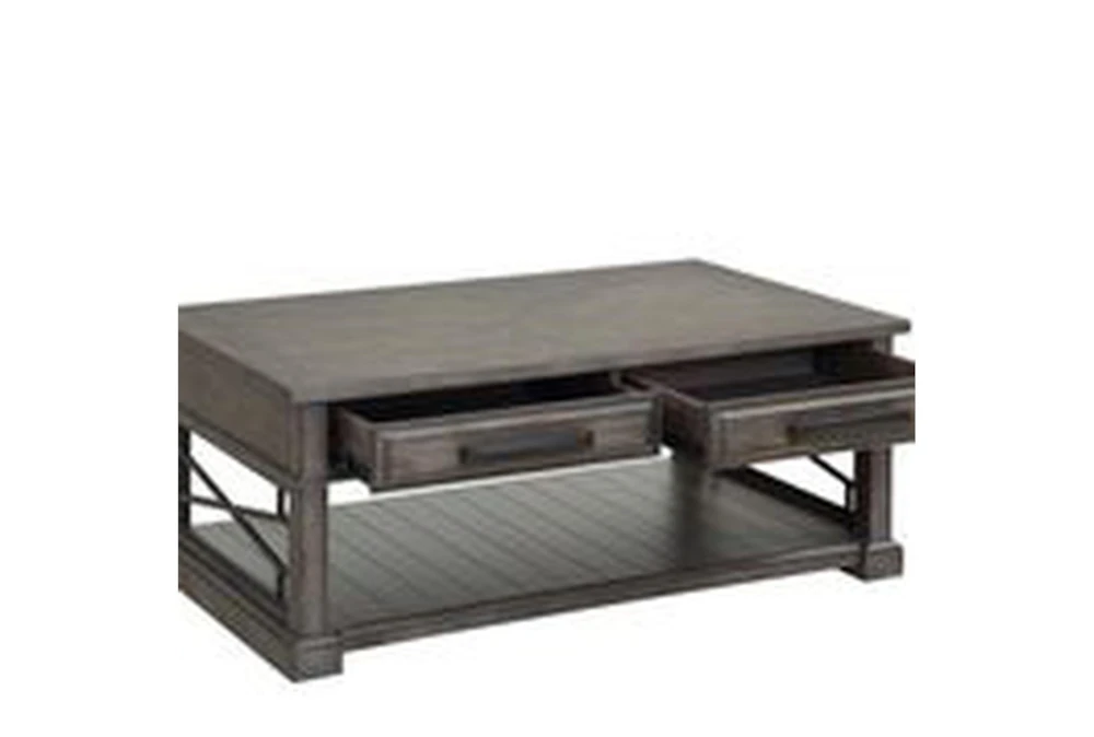 The Sundance Smoked Grey Coffee Table is a traditional style piece made from poplar solids and birch veneers, featuring a smokey grey color and convenient storage options.