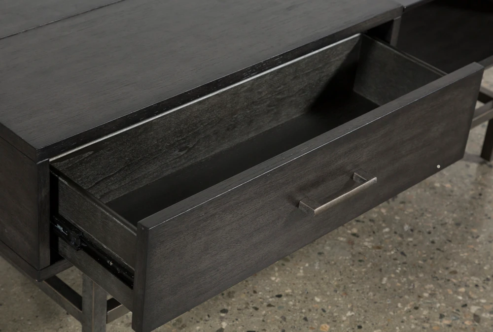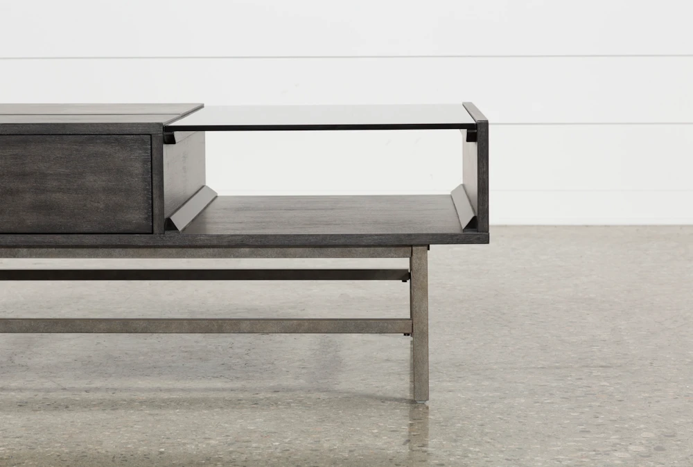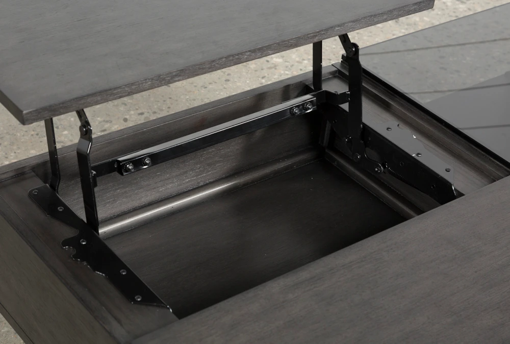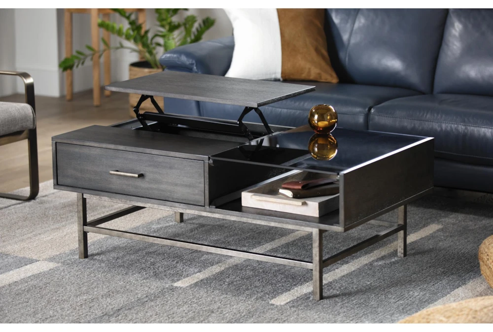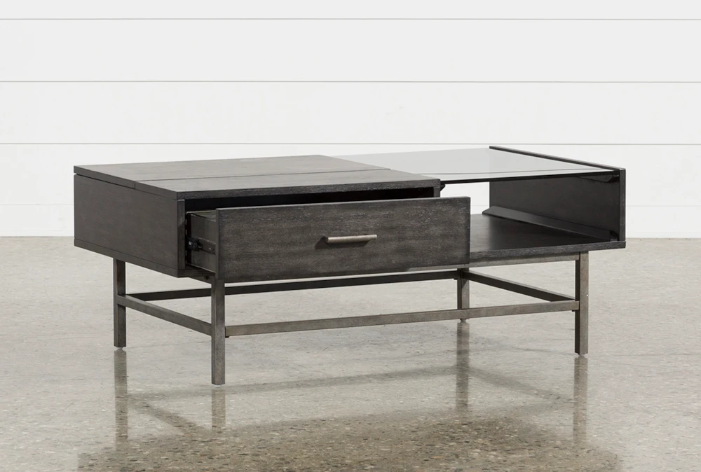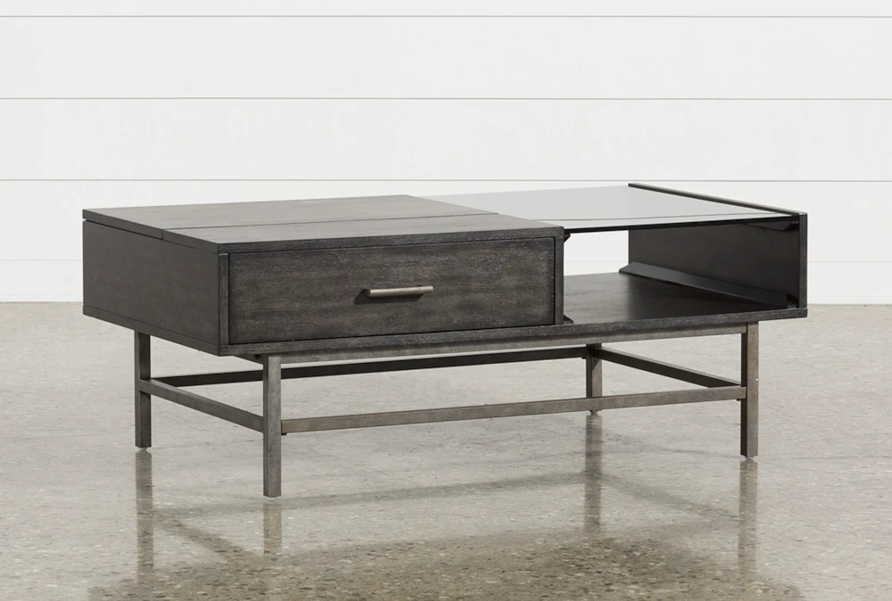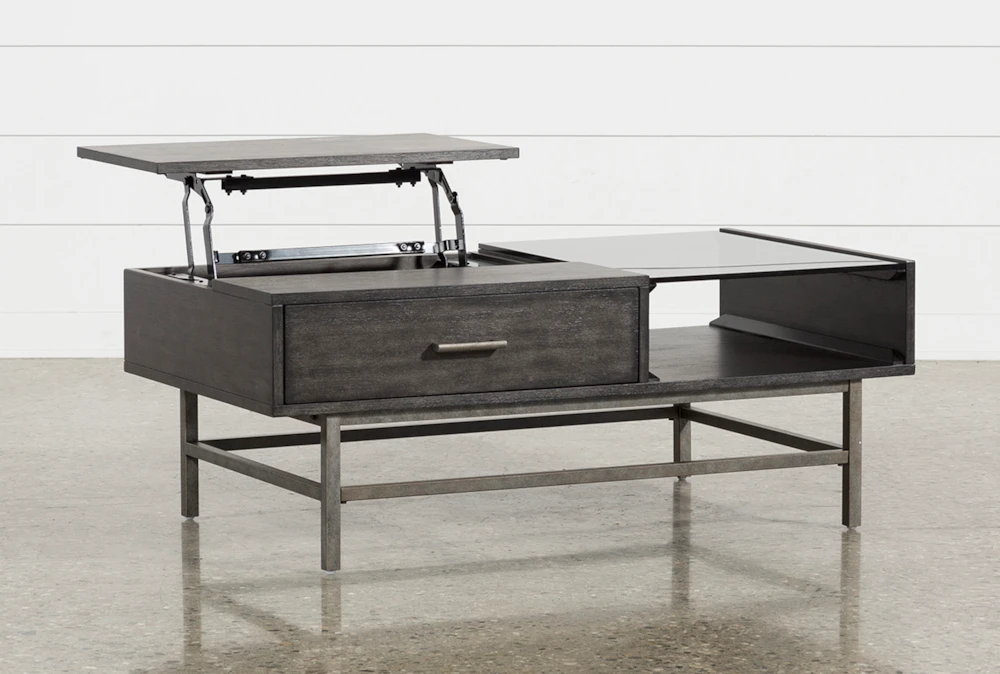 Give your living room a dose of modern flair and function with our Tracie lift-top cocktail table. Crafted with a combination of walnut veneer, tubular metal and glass, this design blends materials to create a very stylish, sturdy addition to your space. For a truly unique look, the top is made to appear as though itโs floating on the sleek base. In addition to the lift-top that elevates to perfect eating, working and reading height, this piece includes a drawer and an open storage compartment for books, dรฉcor and more.