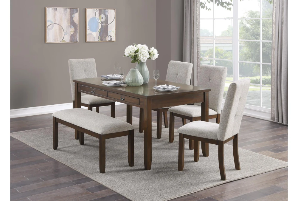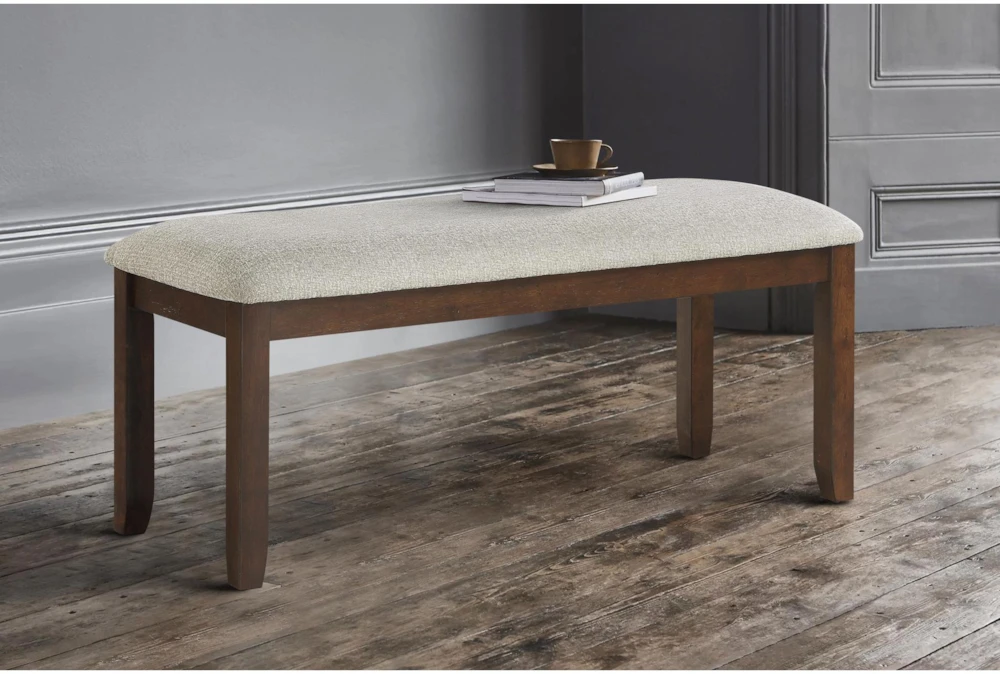 The Zoey Bench is a casual backless seating option made from solid wood and fabric, with a dark cherry finish that is perfect for your dining room. Assembly is required, but the included cushion adds extra comfort to this stylish piece.
